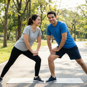 - Set Up Your Space: If you’re working out at home, clear a small area so you can move around safely.